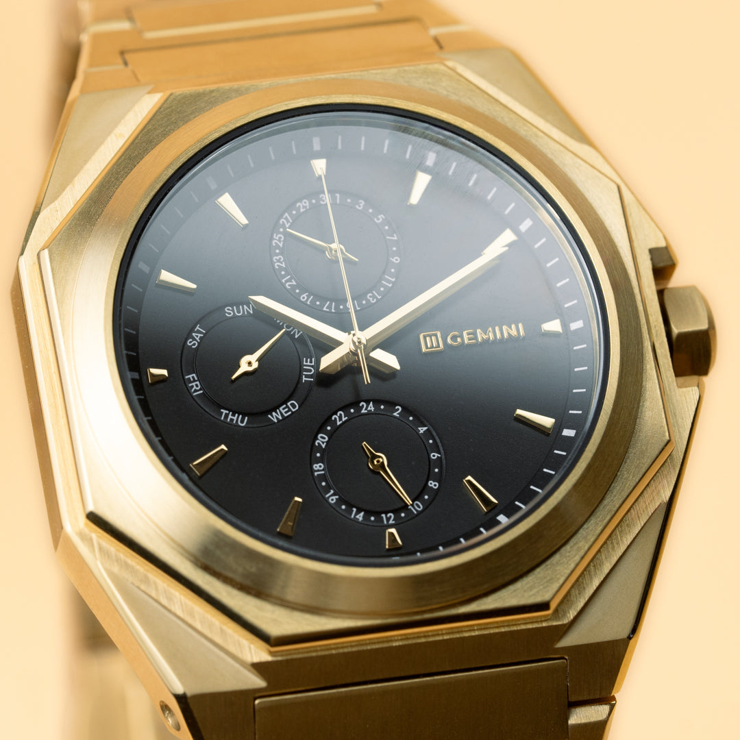 Our designers made this watch to reflect the octogonal watch case trend that was introduced by premium watch brands such as Bulgari, Audemars Piguet and Casio in the past. The traditional round case is replaced systematically by this new modern version with 8 corners.