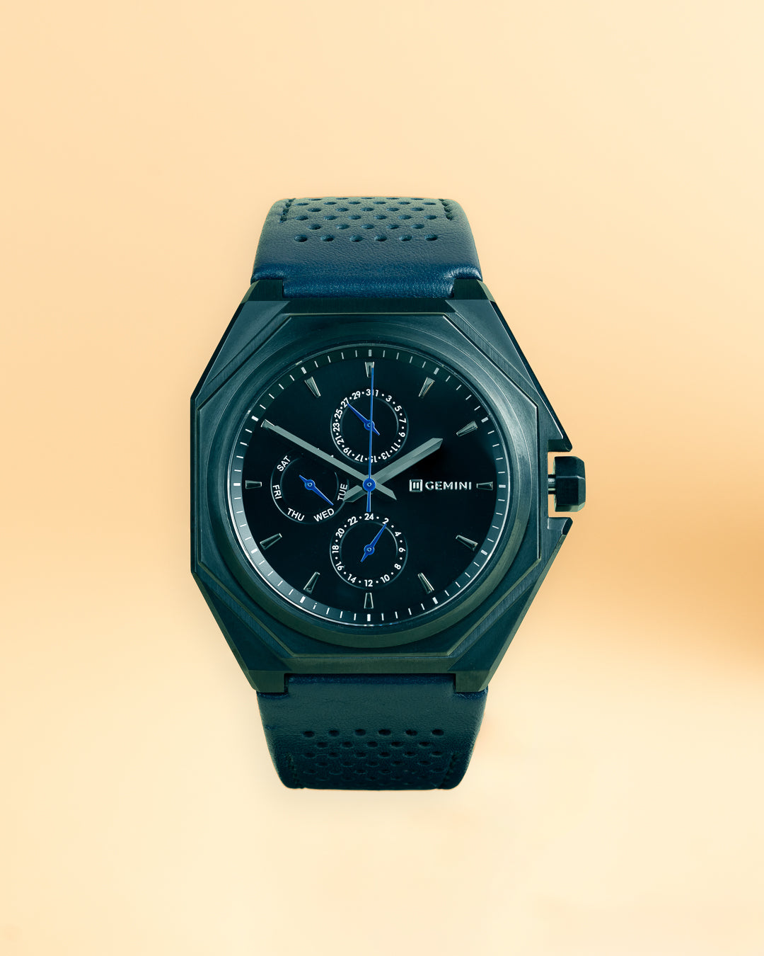 44 mm dunkelgraue Stahluhr mit italienischem Lederarmband