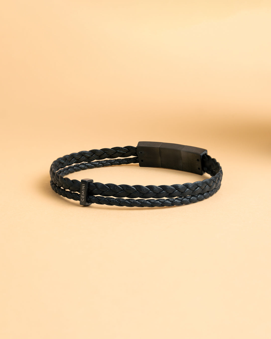 Doppeltes Armband aus schwarzem italienischem Nappaleder mit schwarzem Finish