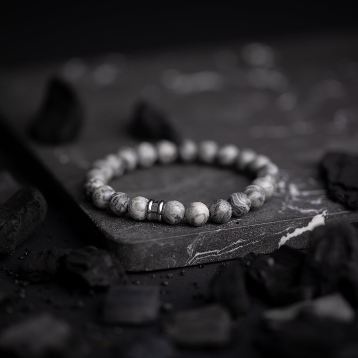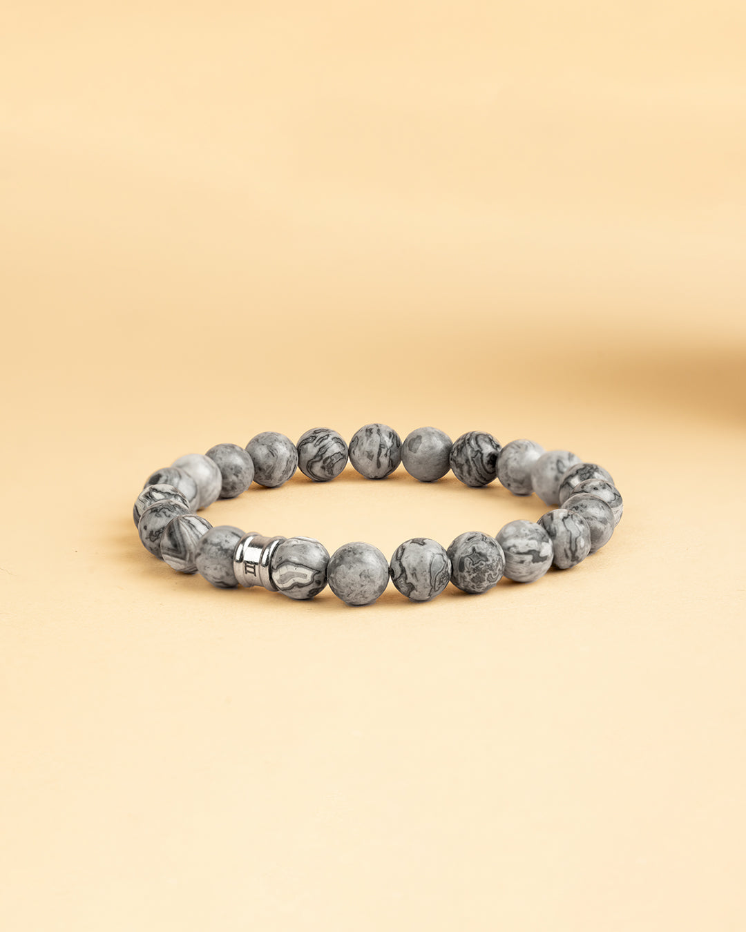 Das Gemini Alpha Grey Herrenarmband ist zeitlos und verleiht Ihrem Outfit eine zusätzliche Dimension. Sie können ein Gemini Alpha-Steinarmband leicht an seinen rostfreien Abstandshaltern und seinem matten Aussehen erkennen. Die Alpha-Serie besteht aus 6 verschiedenen Farben. Der Naturstein Jaspis – aus Mexiko – ist ein undurchsichtiger Stein, der aus mineralischen Ablagerungen vulkanischer Asche stammt. Diese Natursteine stärken das Selbstbewusstsein.