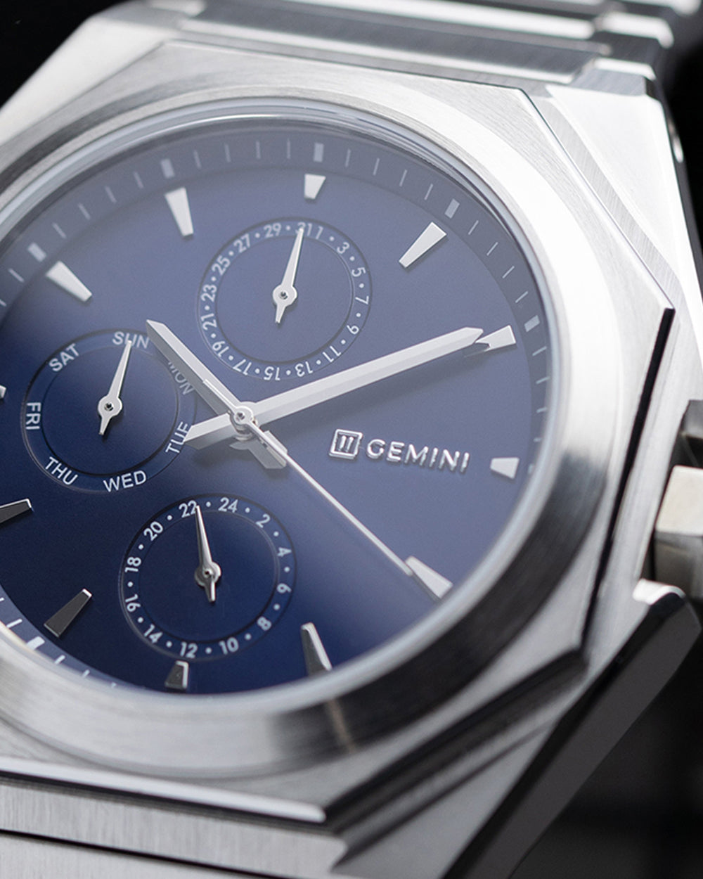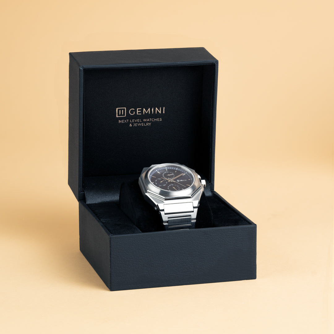 Unsere Designer haben diese Uhr entworfen, um den Trend zu achteckigen Uhrengehäusen widerzuspiegeln, der in der Vergangenheit von Premium-Uhrenmarken wie Bulgari, Audemars Piguet und Casio eingeführt wurde. Das traditionelle runde Gehäuse wird systematisch durch diese neue moderne Version mit 8 Ecken ersetzt.