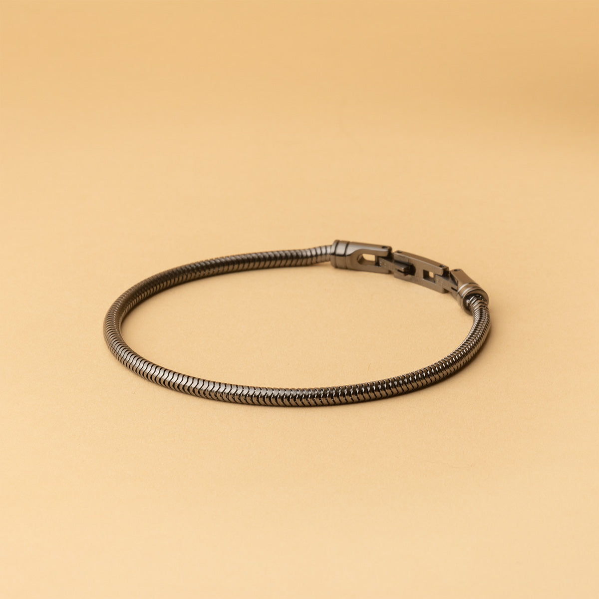 Snake chains were big in the 70s and early 80s for their sleek, futuristic look. Recent fashion waves brought them back—especially in stainless steel and men’s jewelry. It has enough presence to wear solo, but it also combines beautifully with bead bracelets or watches because the texture is calm and neutral.