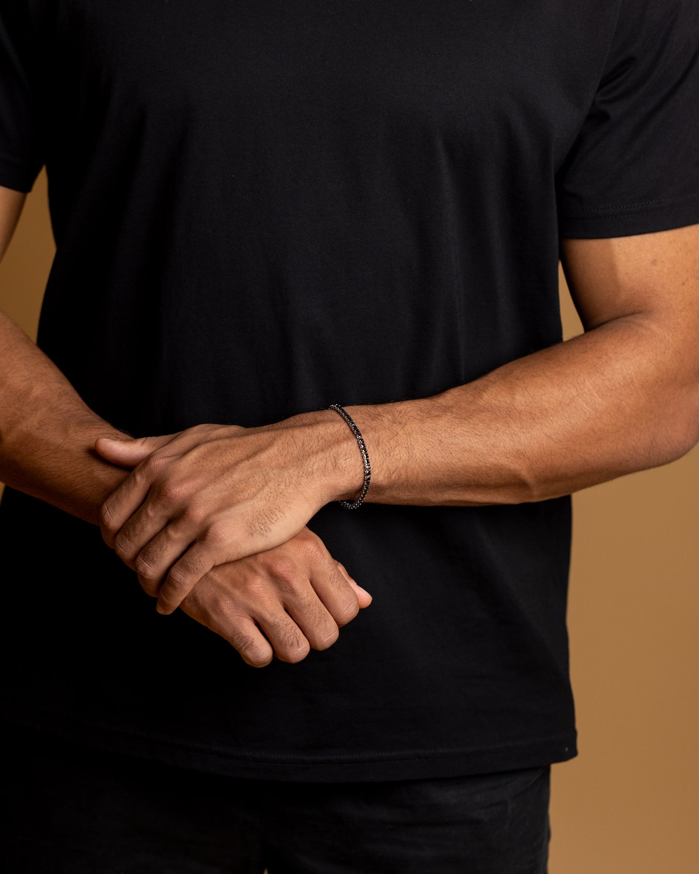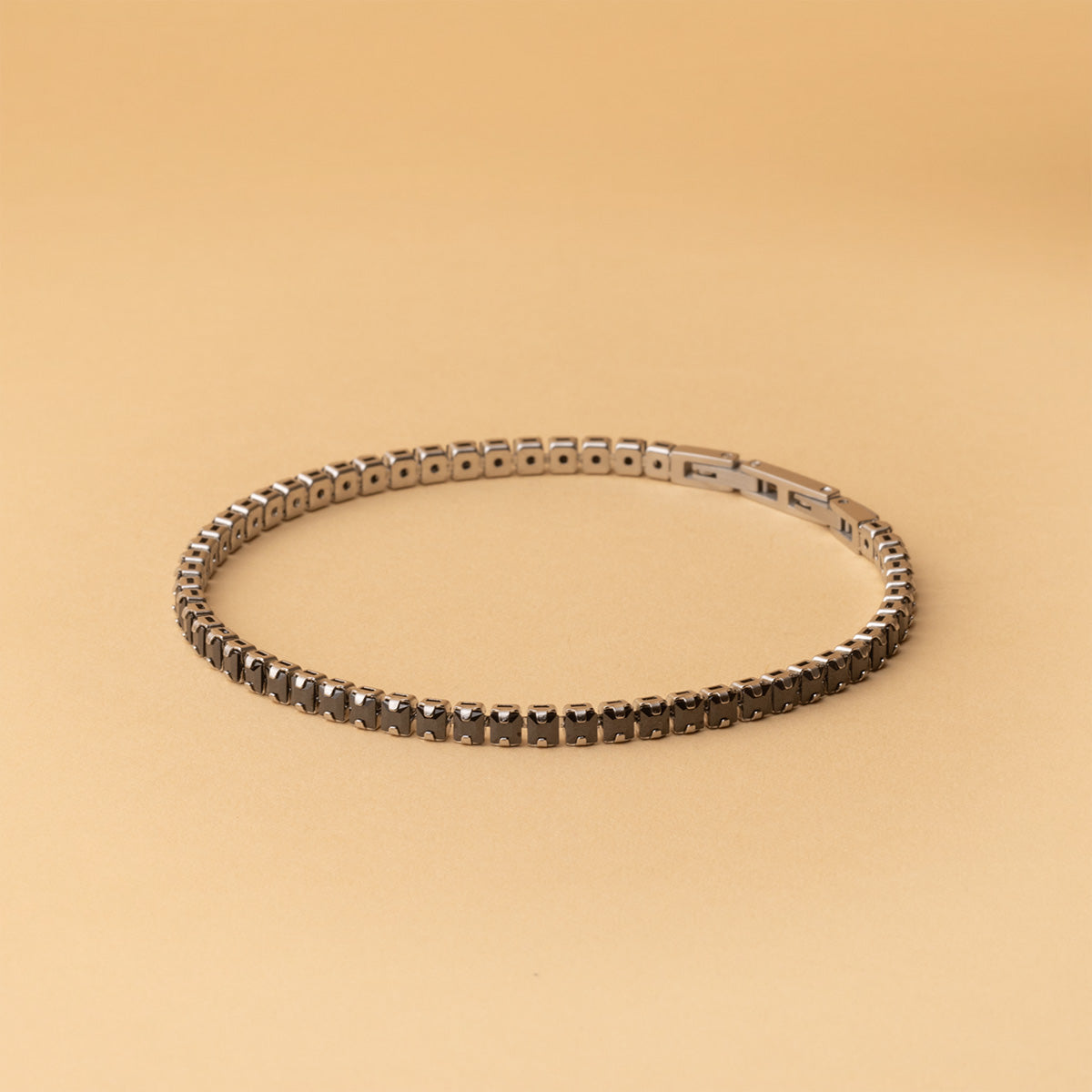 This beautiful 3mm bracelet is made entirely from durable 316L stainless steel finished with high-quality black zircons. It's adjustable by 1cm so you can always adjust is get the perfect fit. The stainless steel setting ensures maximum durability—scratch-resistant, water-resistant, and is perfect for daily wear.