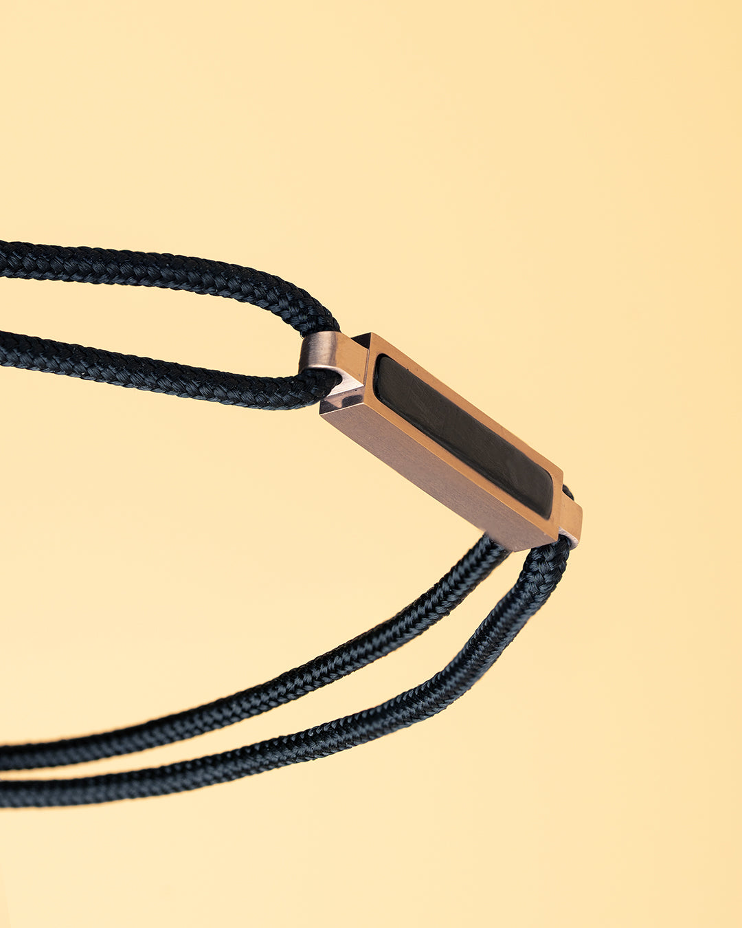 Bracelet en nylon noir avec un élément en carbone plaqué bronze