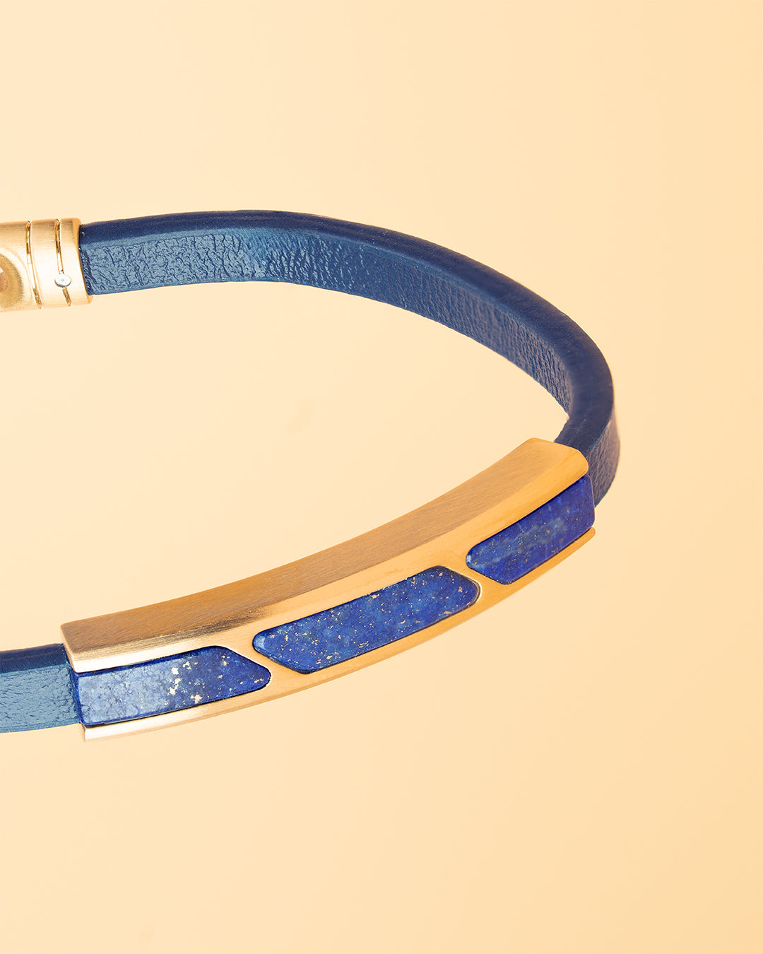 Bracelet en cuir bleu avec pierre de lapis-lazuli