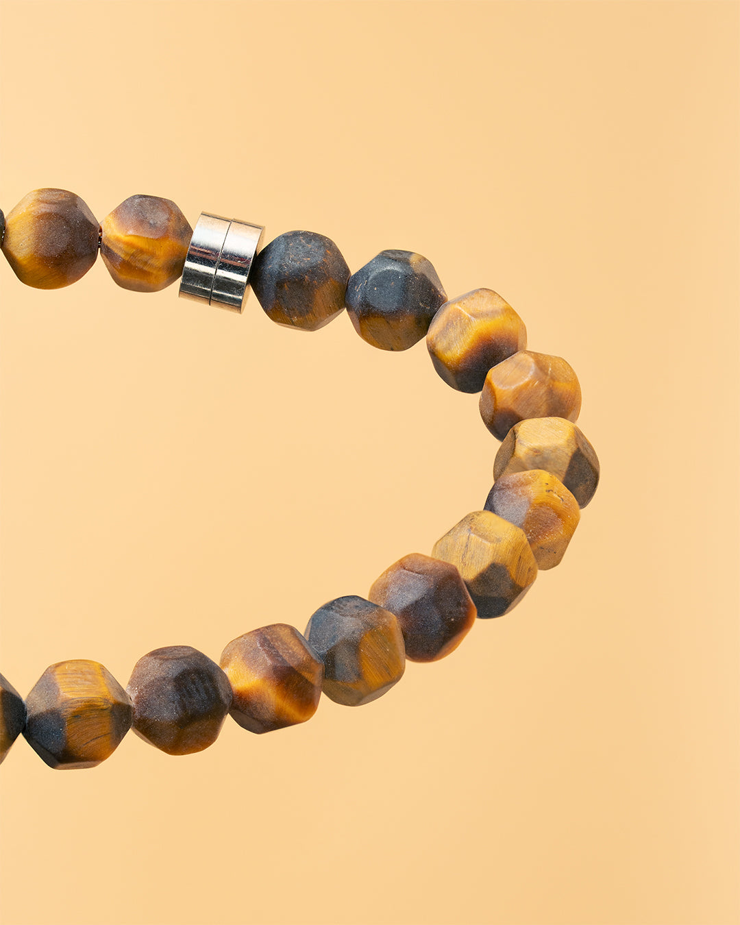 Le bracelet Hexa Mat Tiger est composé de pierres d'oeil de tigre de taille hexagonale et fini avec un élément en titane. Ce bracelet est raffiné et classe et se marie parfaitement avec d'autres accessoires ou montres. L'Œil de Tigre est souvent appelé la Pierre du Guerrier. C'est une pierre puissante qui vous protège des influences extérieures négatives. Il est également réputé pour augmenter le courage, la force et la persévérance.