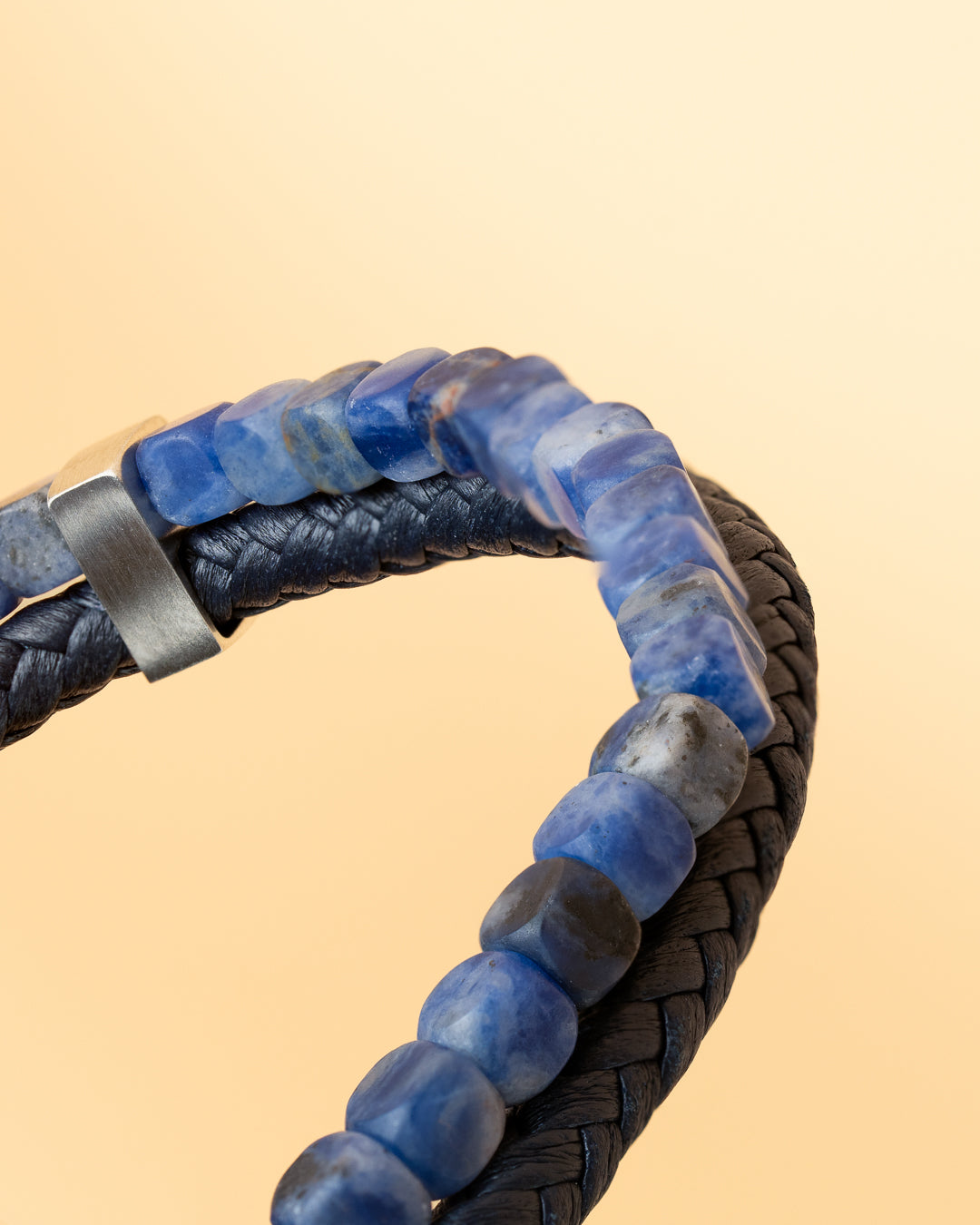 Le cuir bleu utilisé pour ce Double Blue est vraiment exceptionnel : il est tissé à la main en Toscane, en Italie. Vous sentirez clairement la différence avec n'importe quel type de cuir que vous avez déjà essayé. Le bracelet est fini avec des pierres Sodalite de 4 mm. Cette pierre est constituée d'un minéral assez rare connu pour sa couleur bleue à bleu-violet. Parfois, il se caractérise par des veines blanches ou des taches traversant la pierre. En présence de cette pierre naturelle, votre confiance en vous est boostée et votre estime de soi améliorée.