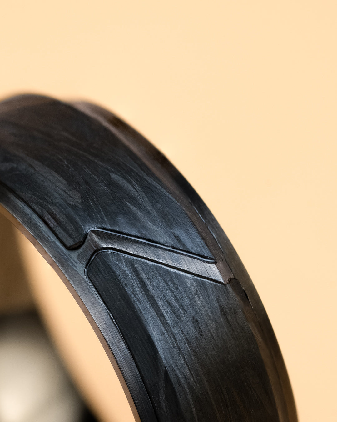 De Carus Black ring is volledig gemaakt van titanium en gesmeed carbon. Deze ring is het pronkstuk van onze ringcollectie vanwege het vakmanschap dat nodig is om deze ring op deze manier af te werken.