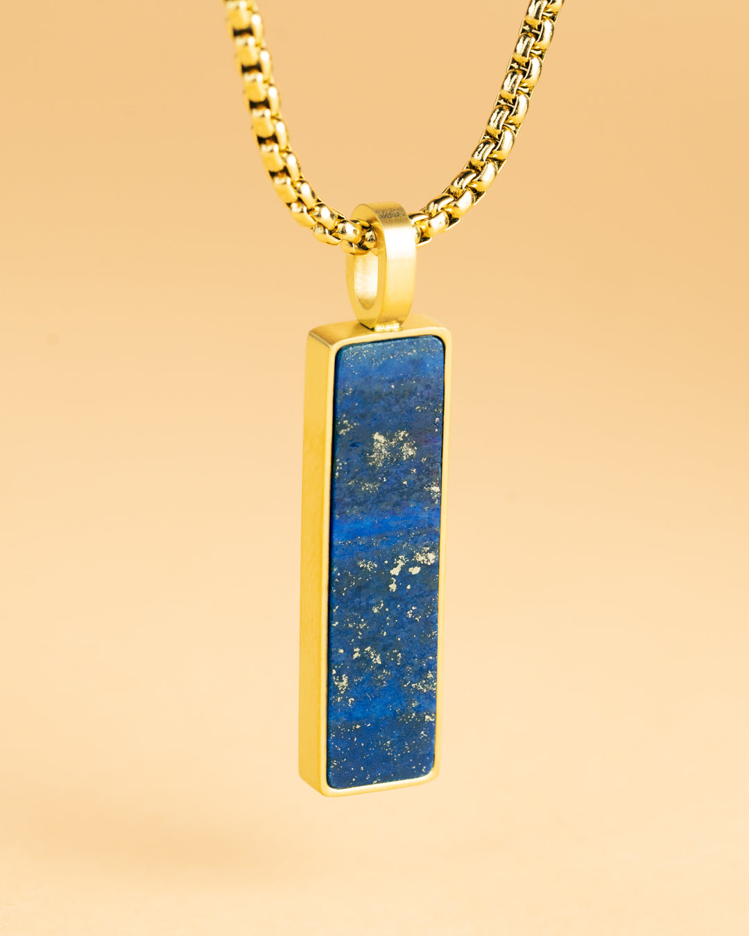 De Galli Gold Blue ketting is gemaakt van duurzaam roestvrij staal en afgewerkt met een prachtige goudblauwe Lapis Lazuli steen. Deze natuursteen wordt ook wel de Steen van Wijsheid genoemd en komt vooral voor in Afghanistan. Het maakt je hoofd helderder, heeft een positieve invloed op de gemoedstoestand en stimuleert je band met andere mensen.